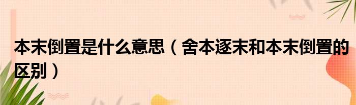 导读 大家好,今天小六子来为大家解答以下的问题,关于本末倒置是什么意思,舍本逐末和本末倒置的区别这个很多人还不知道,现在让我们一起来看看