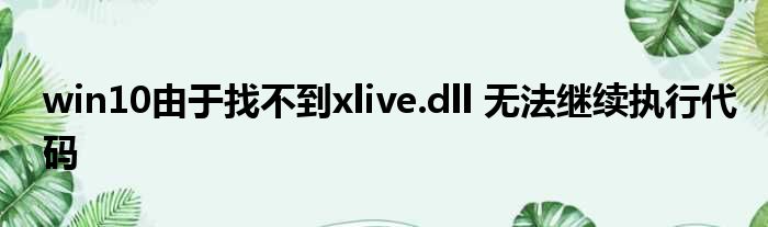 导读 大家好,今天小六子来为大家解答以下的问题,关于win10由于找不到xlive dll 无法继续执行代码这个很多人还不知道,现在让我们一起来看看吧
