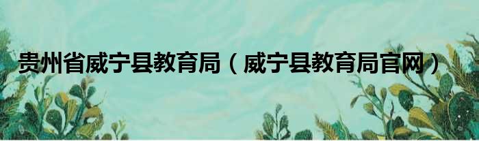 贵州省威宁县教育局(威宁县教育局官网)