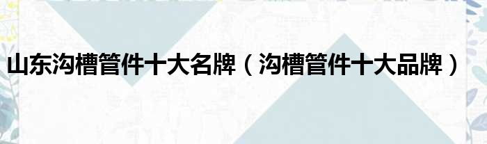 山东沟槽管件十大名牌(沟槽管件十大品牌)