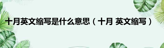 导读 大家好,今天小六子来为大家解答以下的问题,关于十月英文缩写是什么意思,十月 英文缩写这个很多人还不知道,现在让我们一起来看看吧!1、