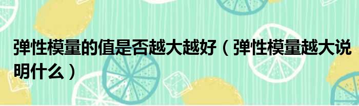 弹性模量的值是否越大越好(弹性模量越大说明什么)