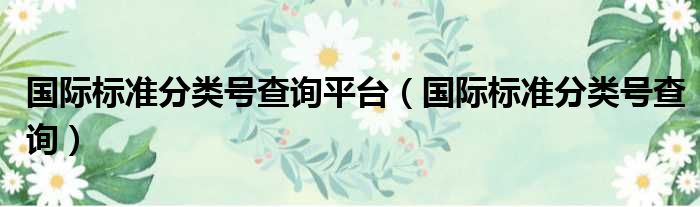 导读 大家好,今天小六子来为大家解答以下的问题,关于国际标准分类号查询平台,国际标准分类号查询这个很多人还不知道,现在让我们一起来看看吧