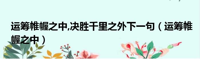 运筹帷幄之中,决胜千里之外下一句(运筹帷幄之中)