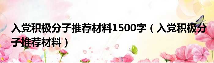 入党积极分子推荐材料1500字(入党积极分子推荐材料)