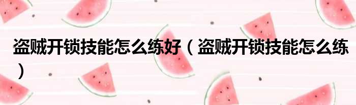 盗贼开锁技能怎么练好(盗贼开锁技能怎么练)