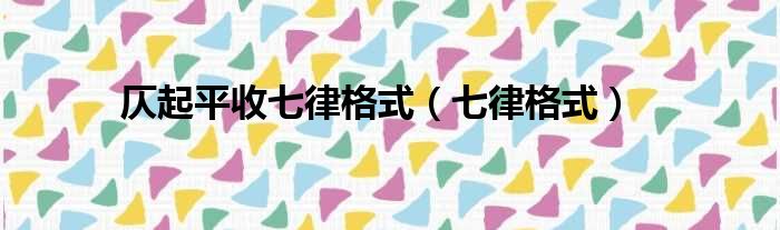大家好,今天小六子来为大家解答以下的问题,关于仄起平收七律格式,七律格式这个很多人还不知道,现在让我们一起来看看吧!