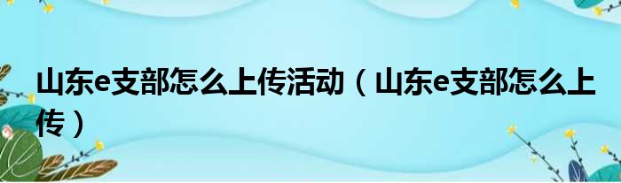 山东e支部怎么上传活动(山东e支部怎么上传)