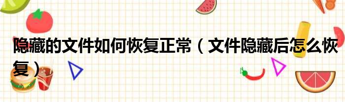 隐藏的文件如何恢复正常(文件隐藏后怎么恢复)
