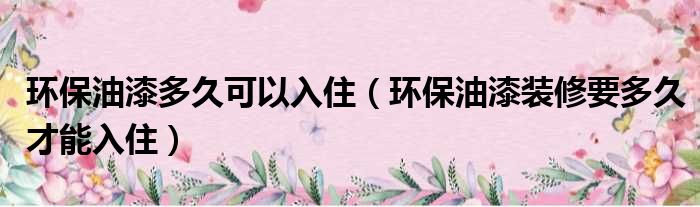 环保油漆多久可以入住(环保油漆装修要多久才能入住)