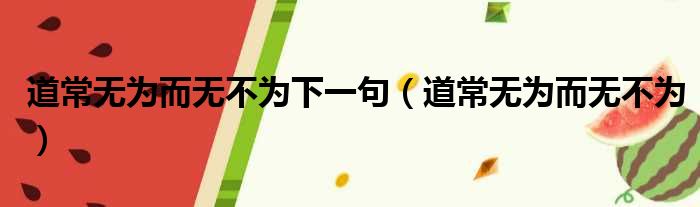 导读 大家好,今天小六子来为大家解答以下的问题,关于道常无为而无不为下一句,道常无为而无不为这个很多人还不知道,现在让我们一起来看看吧!1