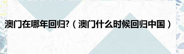 导读 大家好,今天小六子来为大家解答以下的问题,关于澳门在哪年回归?,澳门什么时候回归中国这个很多人还不知道,现在让我们一起来看看吧!1、