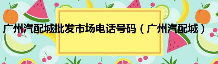 导读 大家好,今天小六子来为大家解答以下的问题,关于广州汽配城批发市场电话号码,广州汽配城这个很多人还不知道,现在让我们一起来看看吧!1、