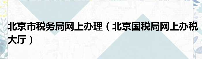 北京市税务局网上办理(北京国税局网上办税大厅)