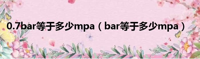 导读 大家好,今天小六子来为大家解答以下的问题,关于0 7bar等于多少mpa,bar等于多少mpa这个很多人还不知道,现在让我们一起来看看吧!1、1巴(b