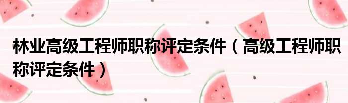 林业高级工程师职称评定条件(高级工程师职称评定条件)