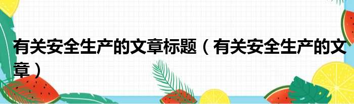 大家好,今天小六子来为大家解答以下的问题,关于有关安全生产的文章标题,有关安全生产的文章这个很多人还不知道,现在让我们一起来看看吧!