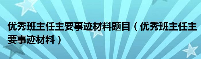优秀班主任主要事迹材料题目(优秀班主任主要事迹材料)