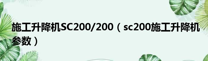 导读 大家好,今天小六子来为大家解答以下的问题,关于施工升降机SC200 200,sc200施工升降机参数这个很多人还不知道,现在让我们一起来看看吧!1