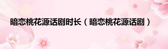 大家好,今天小六子来为大家解答以下的问题,关于暗恋桃花源话剧时长,暗恋桃花源话剧这个很多人还不知道,现在让我们一起来看看吧!