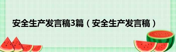大家好,今天小六子来为大家解答以下的问题,关于安全生产发言稿3篇,安全生产发言稿这个很多人还不知道,现在让我们一起来看看吧!