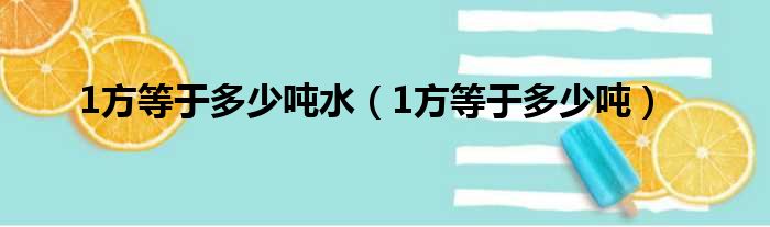导读 大家好,今天小六子来为大家解答以下的问题,关于1方等于多少吨水,1方等于多少吨这个很多人还不知道,现在让我们一起来看看吧!1、一方水就