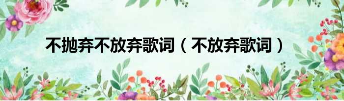 导读 大家好,今天小六子来为大家解答以下的问题,关于不抛弃不放弃歌词,不放弃歌词这个很多人还不知道,现在让我们一起来看看吧!1、歌曲:我不