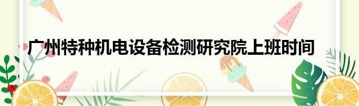广州特种机电设备检测研究院上班时间