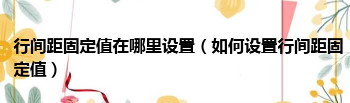 行间距固定值在哪里设置(如何设置行间距固定值)