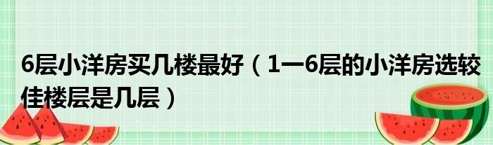 导读 大家好,啊来为大家解答以上的问题。6层小洋房买几楼最好,1一6层的小洋房选较佳楼层是几层这个很多人还不知道,现在让我们一起来看看吧!1