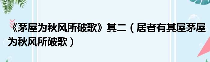 《茅屋为秋风所破歌》其二(居者有其屋茅屋为秋风所破歌)