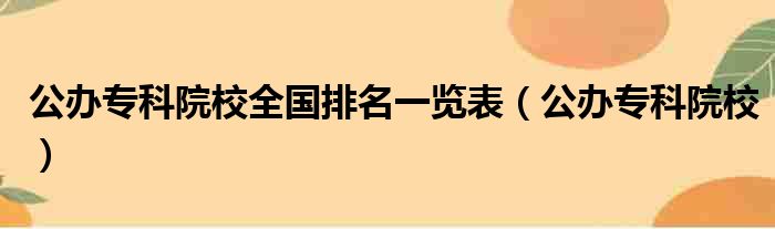 导读 大家好,今天小六子来为大家解答以下的问题,关于公办专科院校全国排名一览表,公办专科院校这个很多人还不知道,现在让我们一起来看看吧!1
