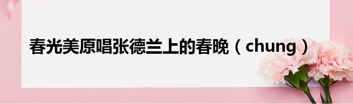 导读 大家好,今天小六子来为大家解答以下的问题,关于春光美原唱张德兰上的春晚,chung这个很多人还不知道,现在让我们一起来看看吧!1、钟汉良
