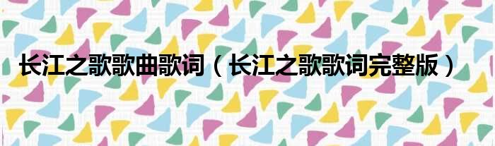 长江之歌歌曲歌词(长江之歌歌词完整版)