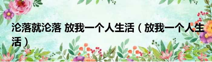导读 大家好,今天小六子来为大家解答以下的问题,关于沦落就沦落 放我一个人生活,放我一个人生活这个很多人还不知道,现在让我们一起来看看吧