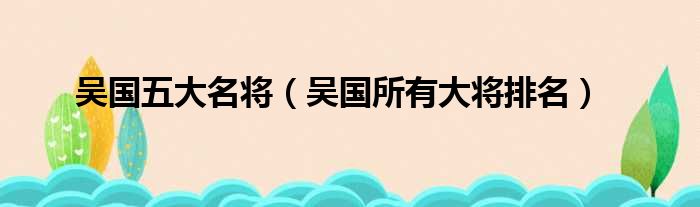 大家好,今天小六子来为大家解答以下的问题,关于吴国五大名将,吴国所有大将排名这个很多人还不知道,现在让我们一起来看看吧!