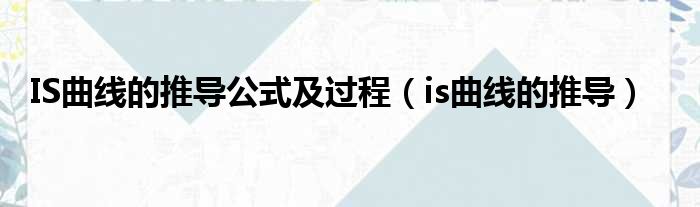大家好,今天小六子来为大家解答以下的问题,关于IS曲线的推导公式及过程,is曲线的推导这个很多人还不知道,现在让我们一起来看看吧!