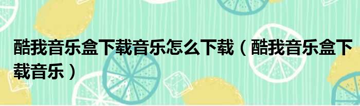 酷我音乐盒下载音乐怎么下载(酷我音乐盒下载音乐)