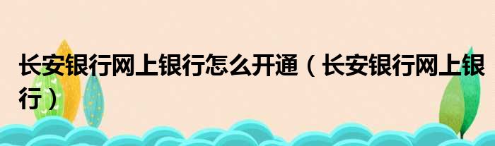 长安银行网上银行怎么开通(长安银行网上银行)
