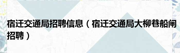 导读 大家好,今天小六子来为大家解答以下的问题,关于宿迁交通局招聘信息,宿迁交通局大柳巷船闸招聘这个很多人还不知道,现在让我们一起来看看