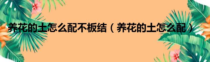 导读 大家好,今天小六子来为大家解答以下的问题,关于养花的土怎么配不板结,养花的土怎么配这个很多人还不知道,现在让我们一起来看看吧!1、大