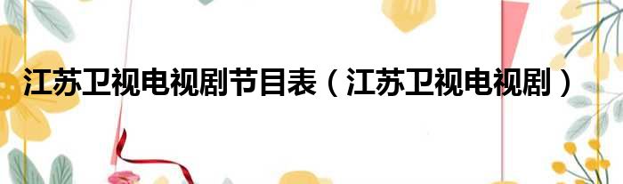 江苏卫视电视剧节目表(江苏卫视电视剧)