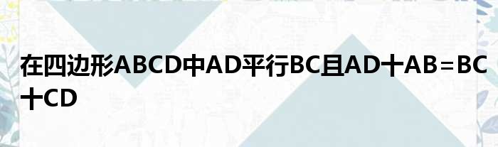 大家好,今天小六子来为大家解答以下的问题,关于在四边形ABCD中AD平行BC且AD十AB=BC十CD这个很多人还不知道,现在让我们一起来看看吧!