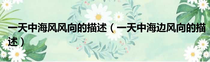 导读 大家好,今天小六子来为大家解答以下的问题,关于一天中海风风向的描述,一天中海边风向的描述这个很多人还不知道,现在让我们一起来看看吧