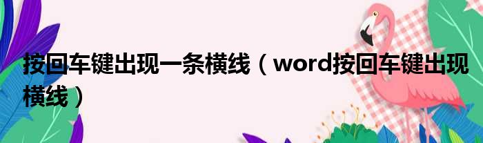 导读 大家好,今天小六子来为大家解答以下的问题,关于按回车键出现一条横线,word按回车键出现横线这个很多人还不知道,现在让我们一起来看看吧