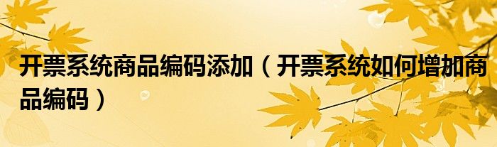 开票系统商品编码添加(开票系统如何增加商品编码)