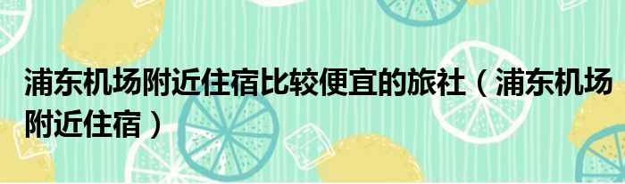 浦东机场附近住宿比较便宜的旅社(浦东机场附近住宿)