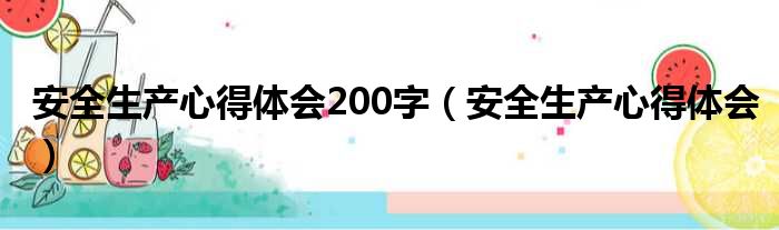 大家好,今天小六子来为大家解答以下的问题,关于安全生产心得体会200字,安全生产心得体会这个很多人还不知道,现在让我们一起来看看吧!
