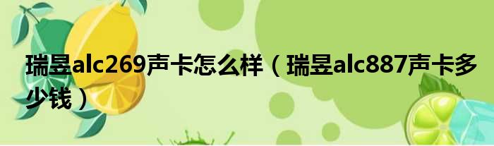 导读 大家好,今天小六子来为大家解答以下的问题,关于瑞昱alc269声卡怎么样,瑞昱alc887声卡多少钱这个很多人还不知道,现在让我们一起来看看吧