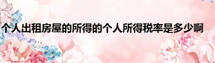 大家好,今天小六子来为大家解答以下的问题,关于个人出租房屋的所得的个人所得税率是多少啊这个很多人还不知道,现在让我们一起来看看吧!
